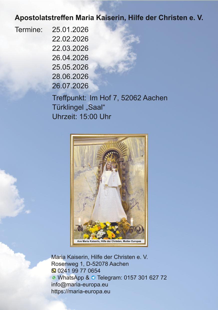 Unsere Mission ist die Erneuerung eines christlichen Europas durch die Gottesmutter Maria